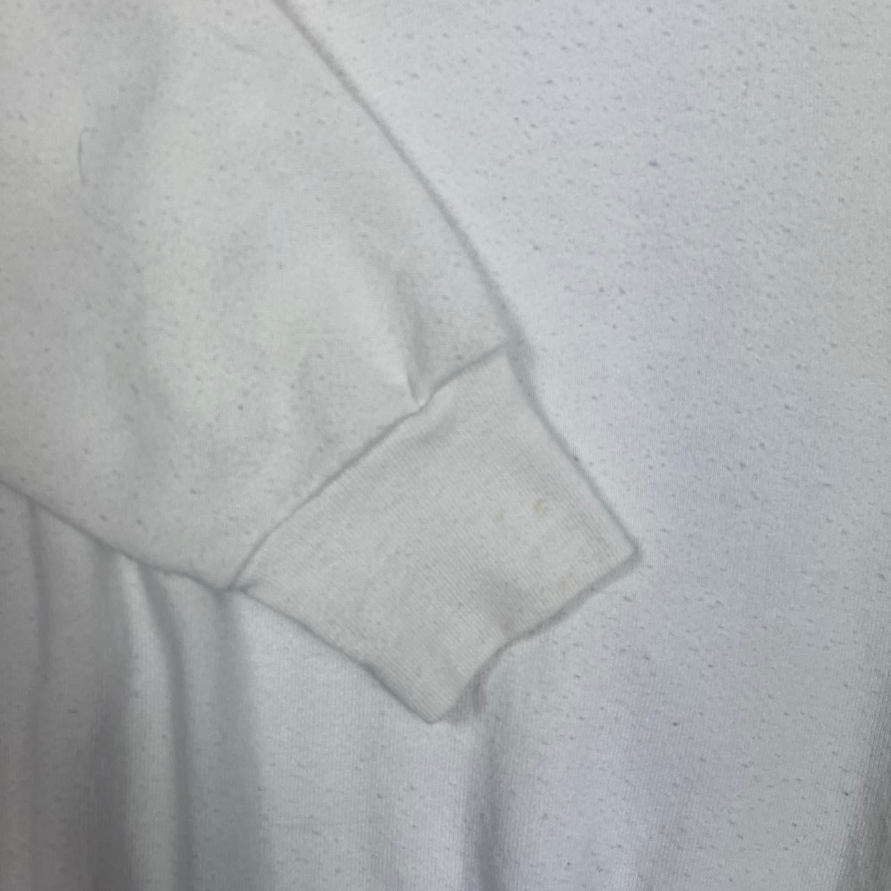 Yellowing on sleeve and on front shown in pictures