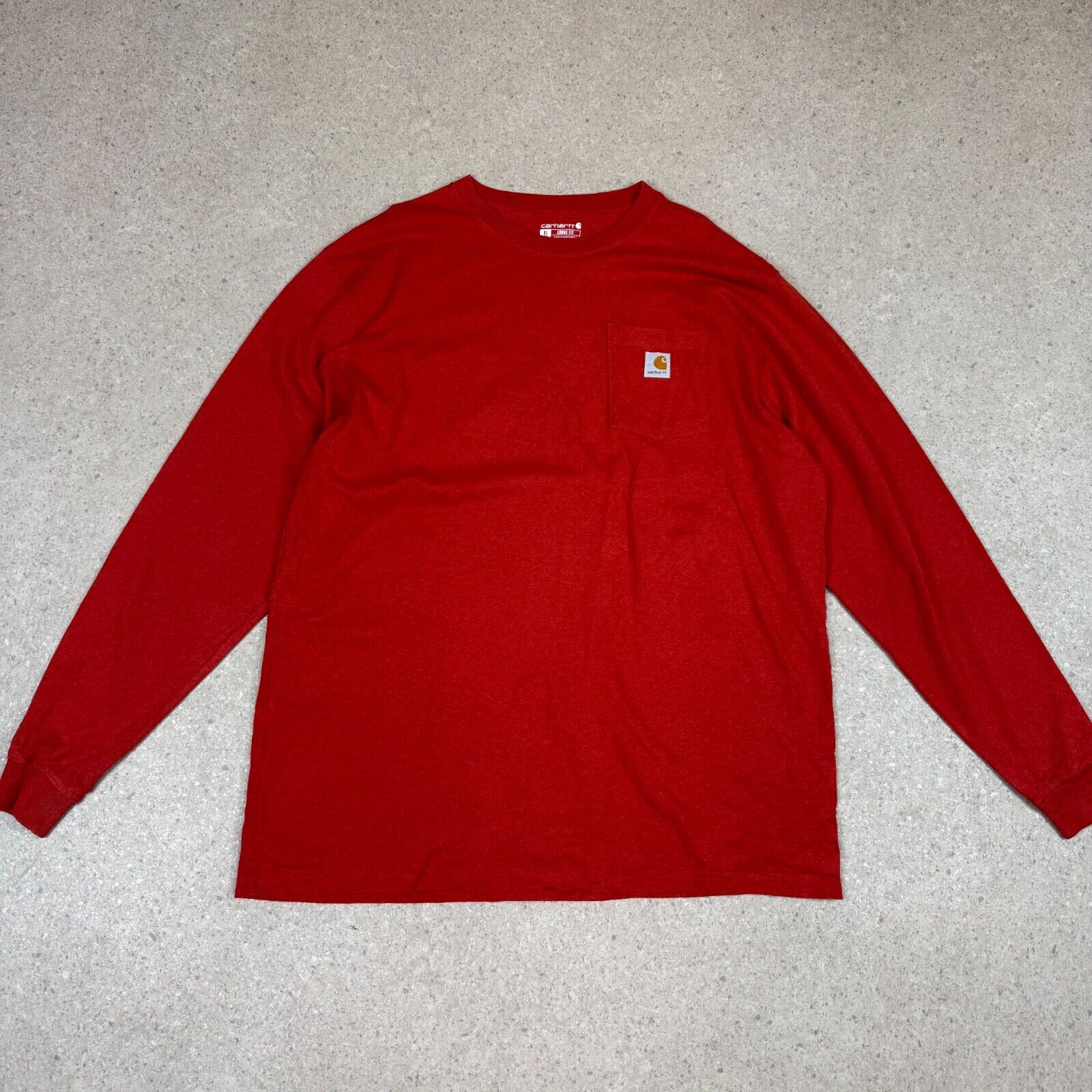 Carhartt Long Sleeve XL Tall Orange Pocket Logo Cotton Oversized Fit