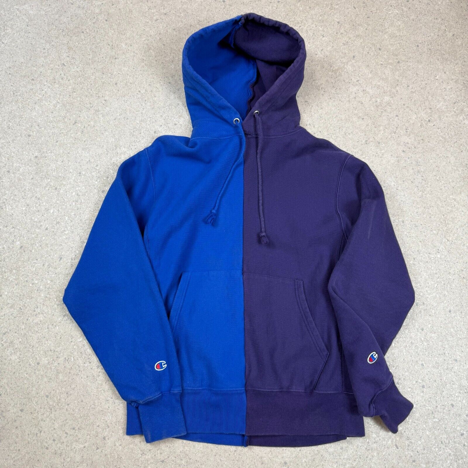 Champion Reverse Weave Reworked Hoodie Medium Navy Blue Hooded Embroidered