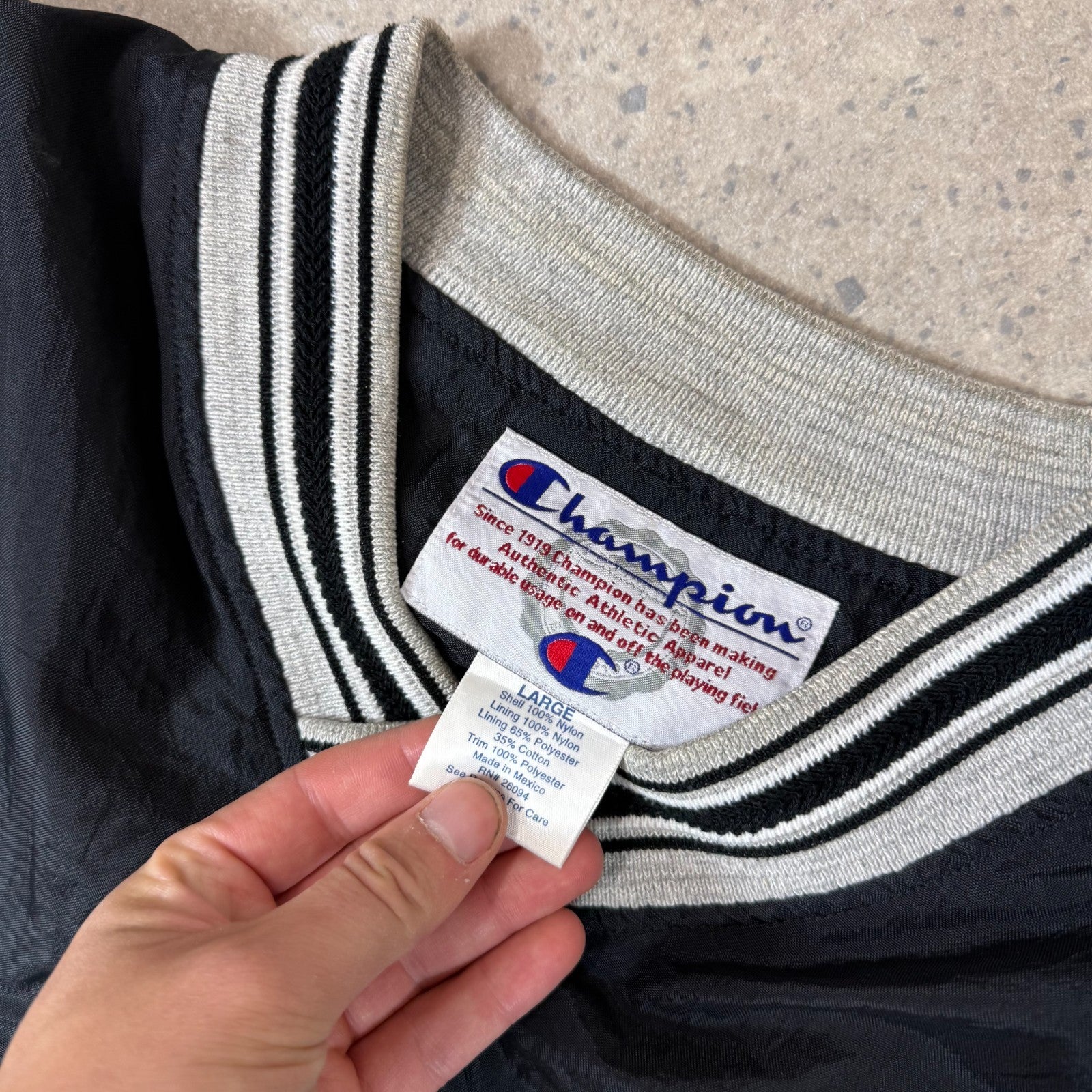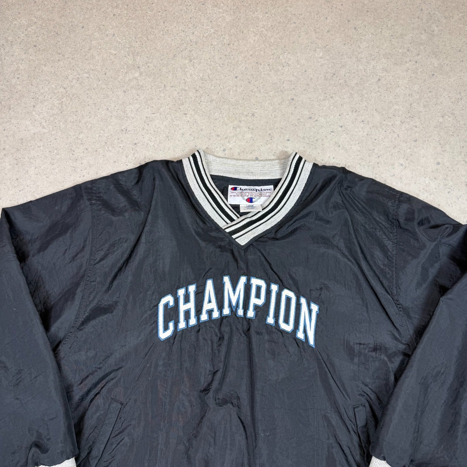 Champion Windbreaker Large Black Pulllover Fully Embroidered V Neck