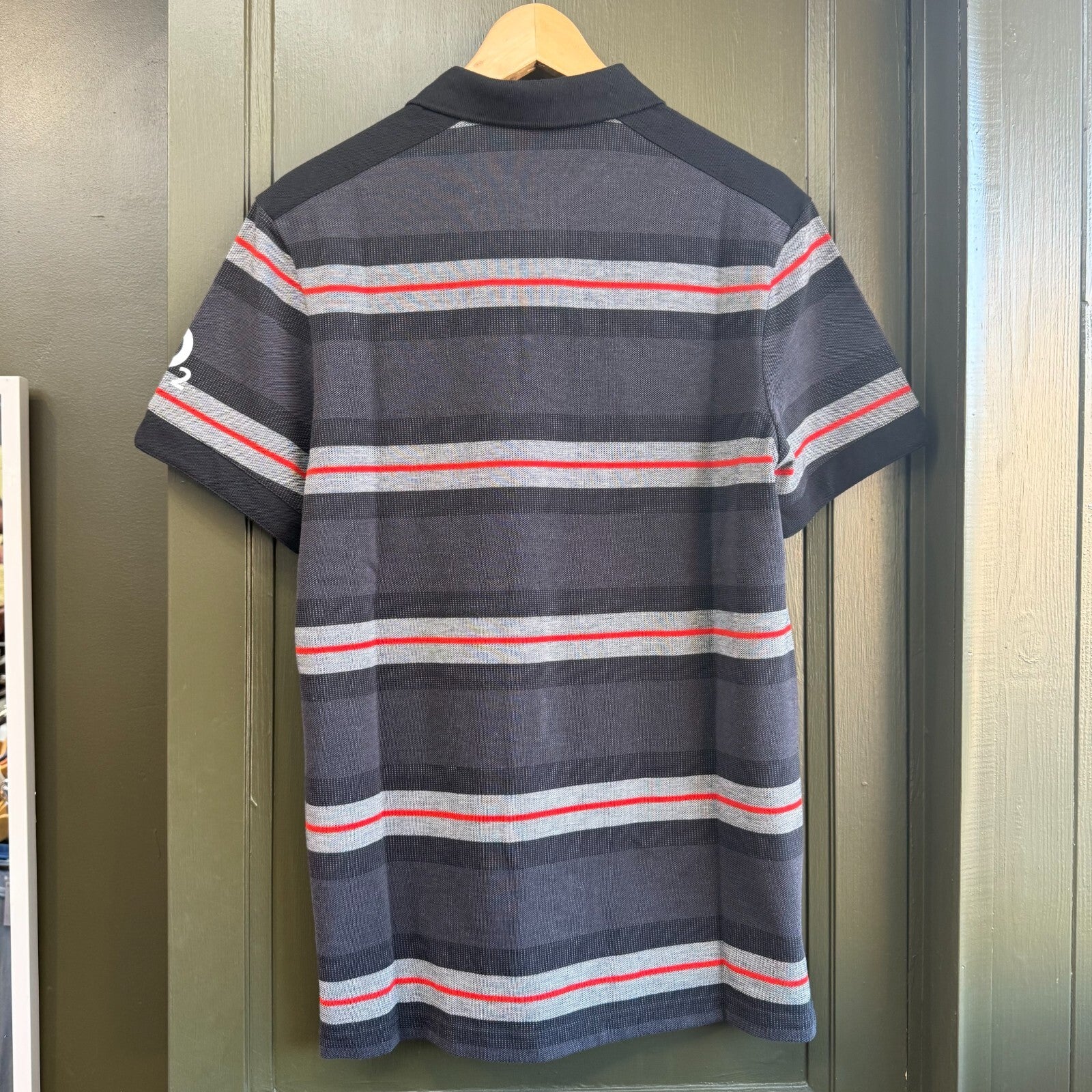 England Rugby Canterburry Polo Shirt Small Grey Black Striped Embroidered Logos