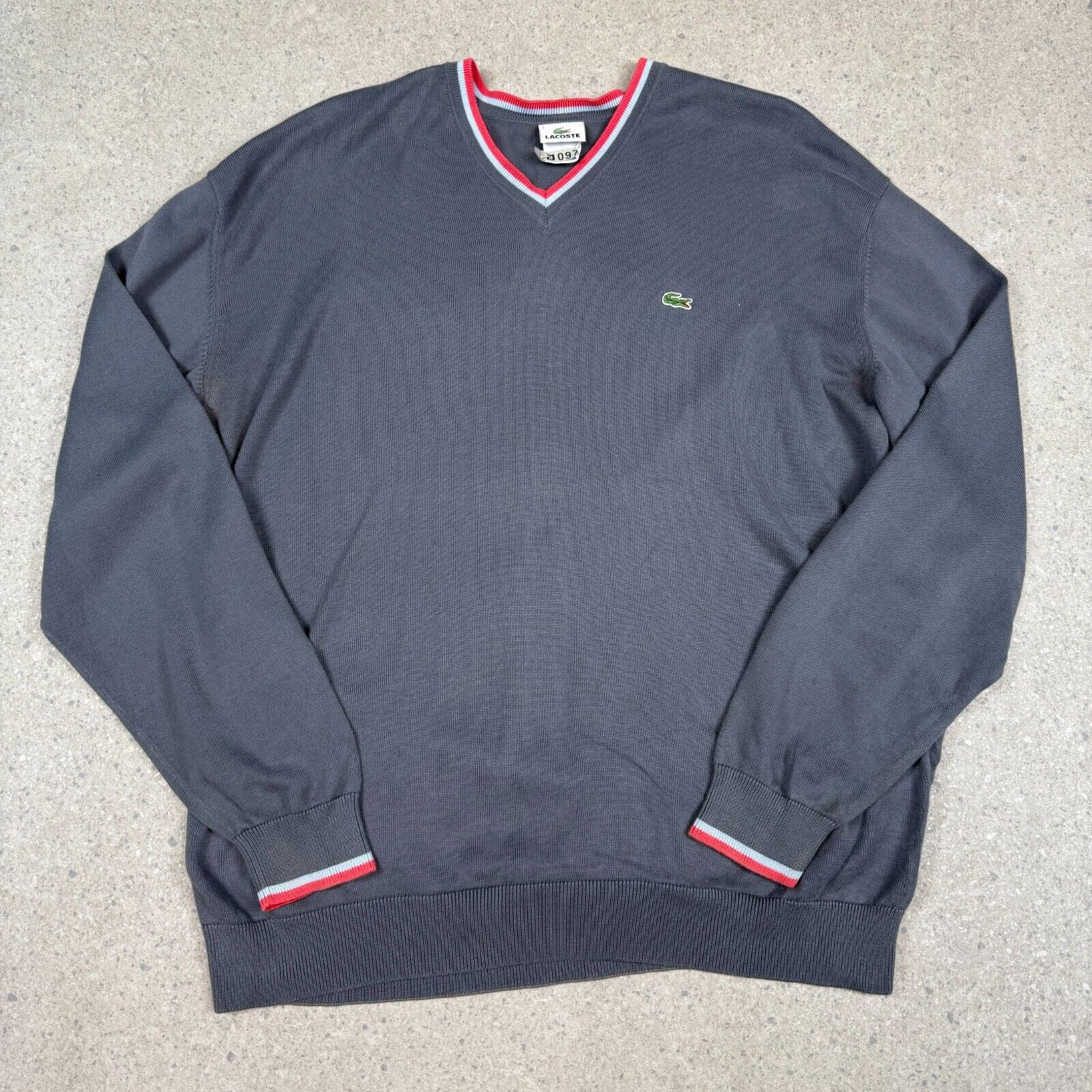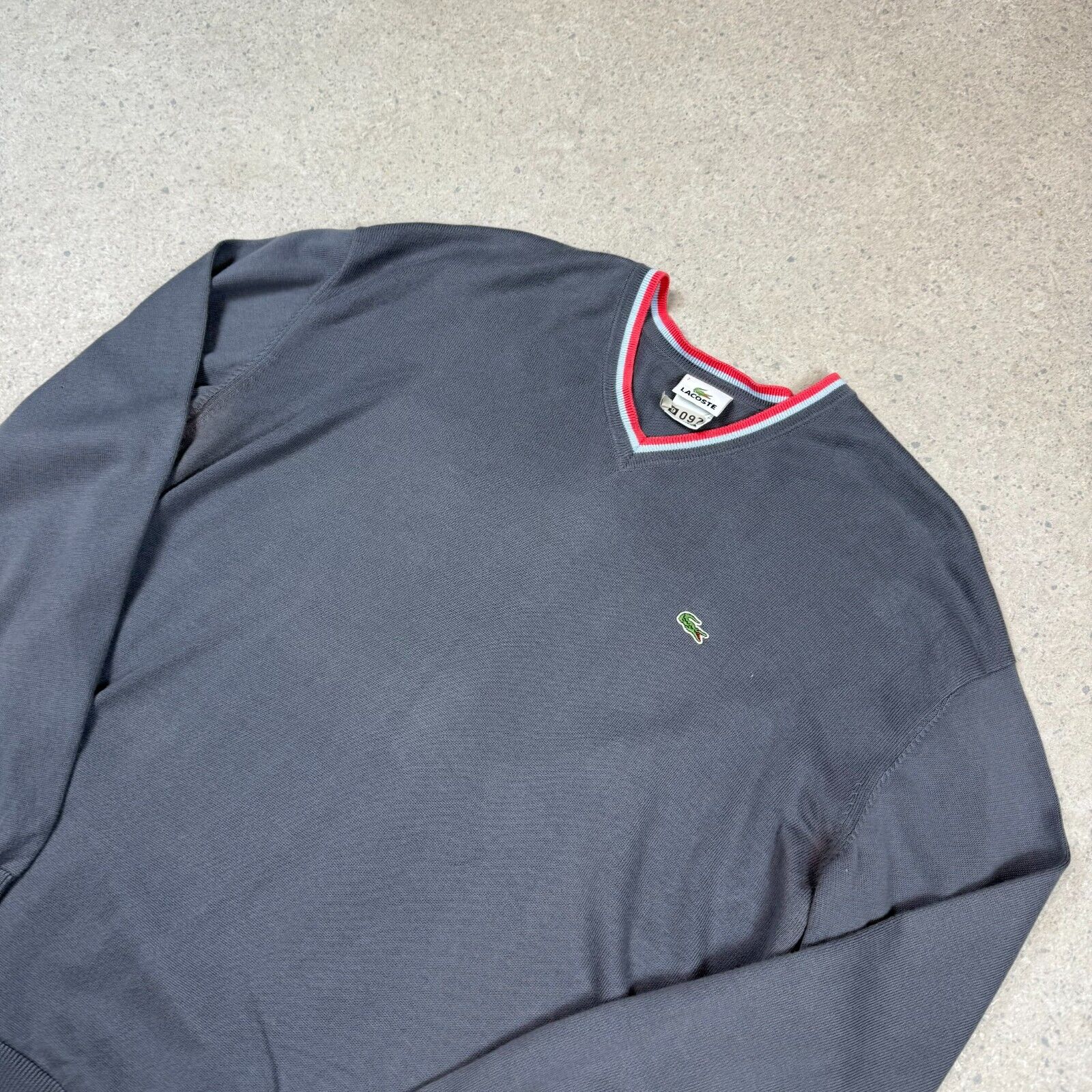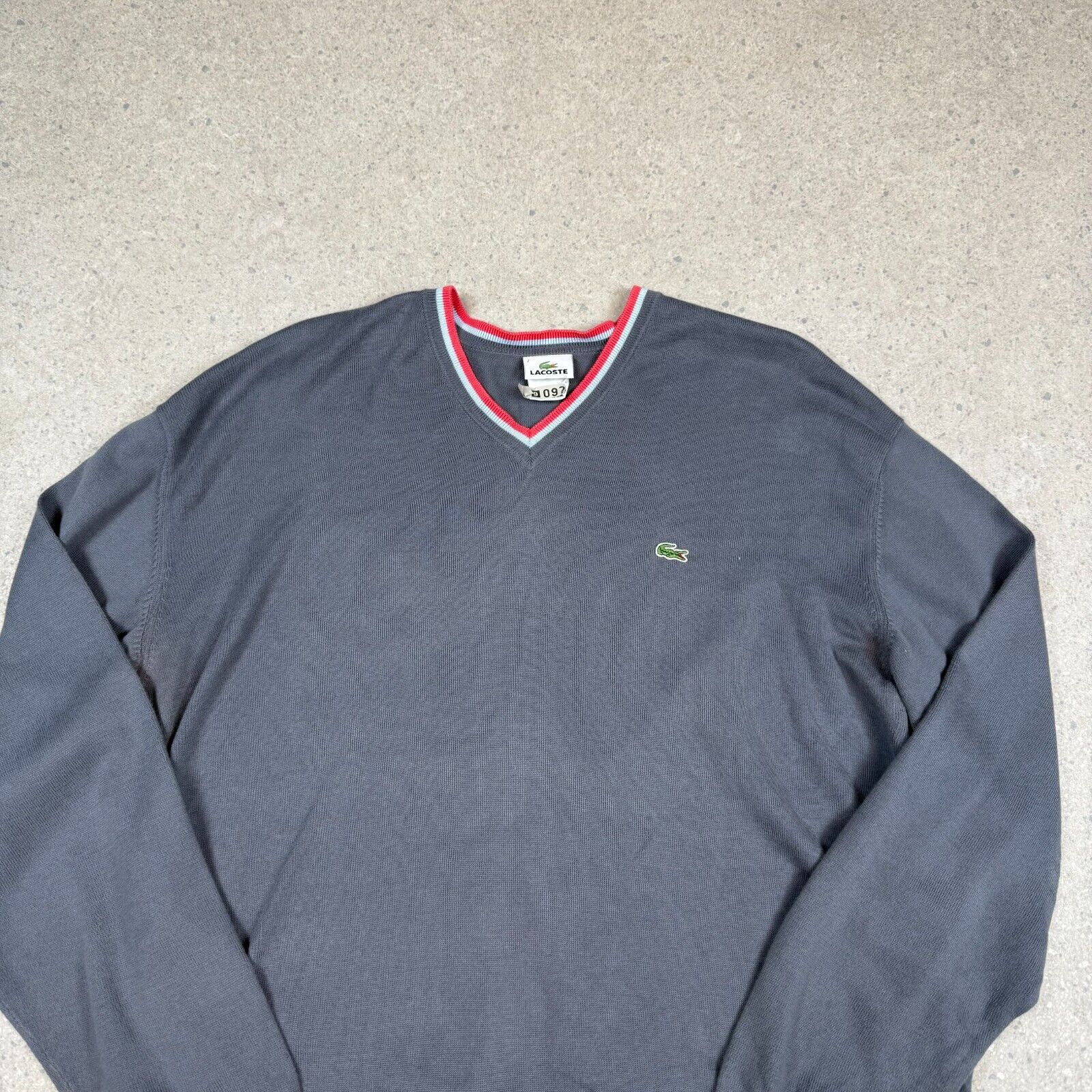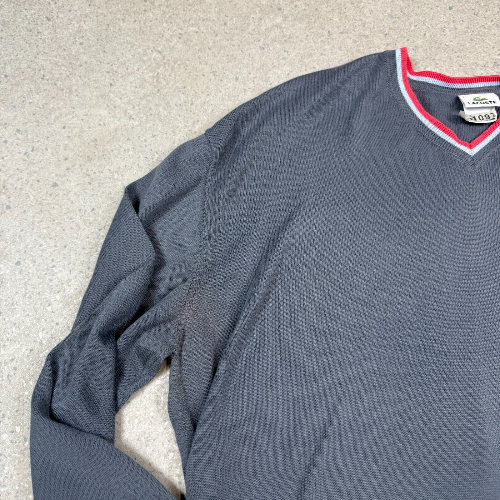 Lacoste V Neck Smart Jumper Large / XL Grey Colourway Embroidered