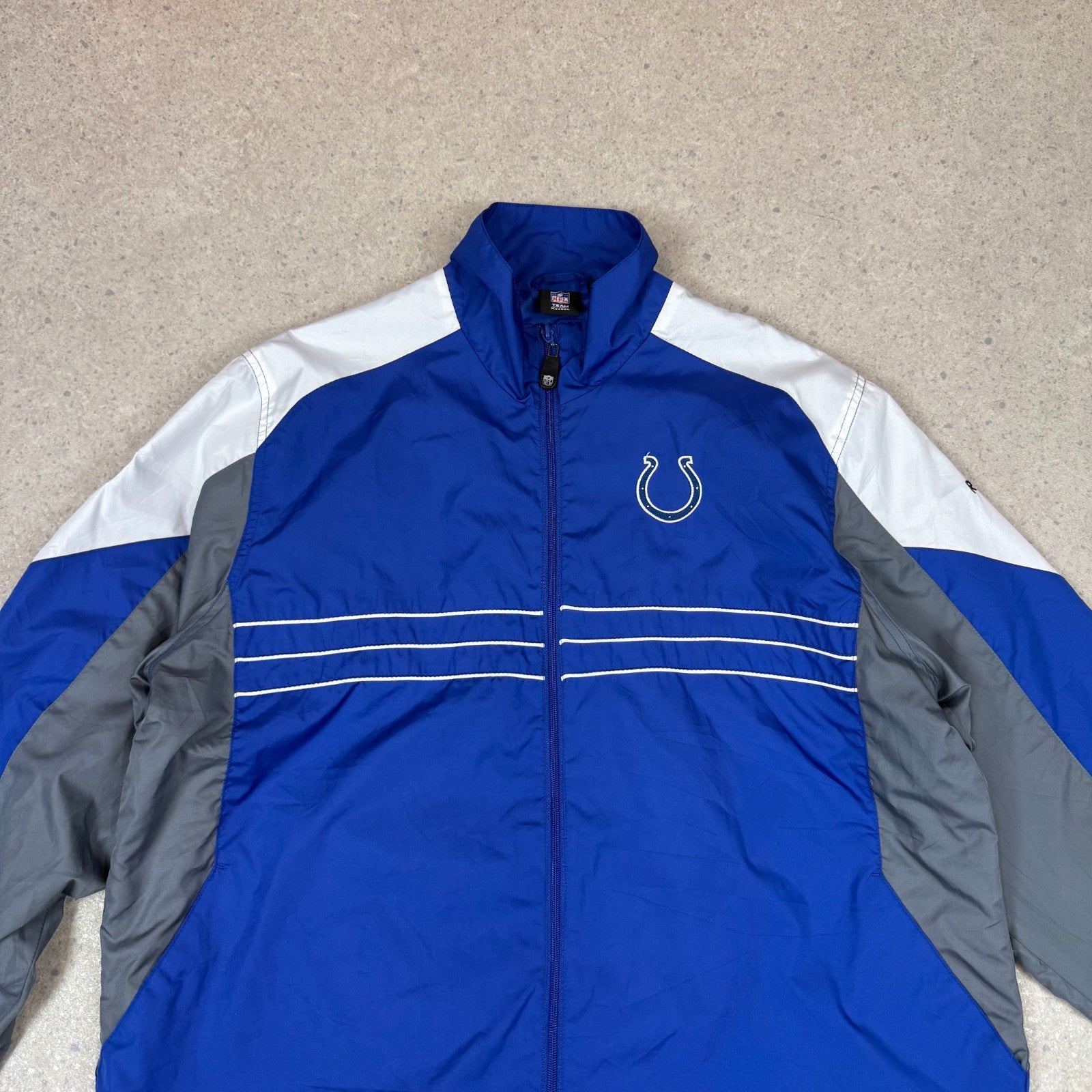 NFL Colts Windbreaker Jacket XL Blue Grey Embroidered Logo Zip Up