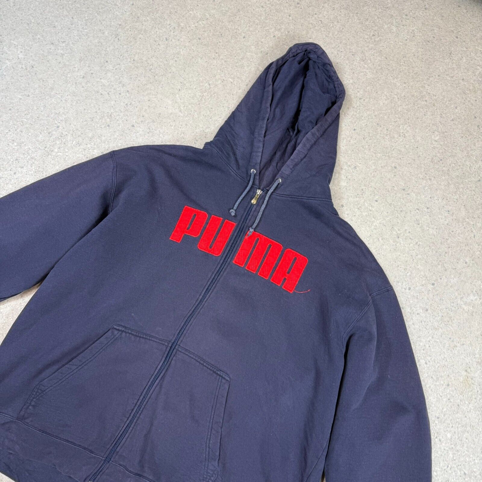 Puma Hoodie 2XL Navy Zip Up Heavy Cotton