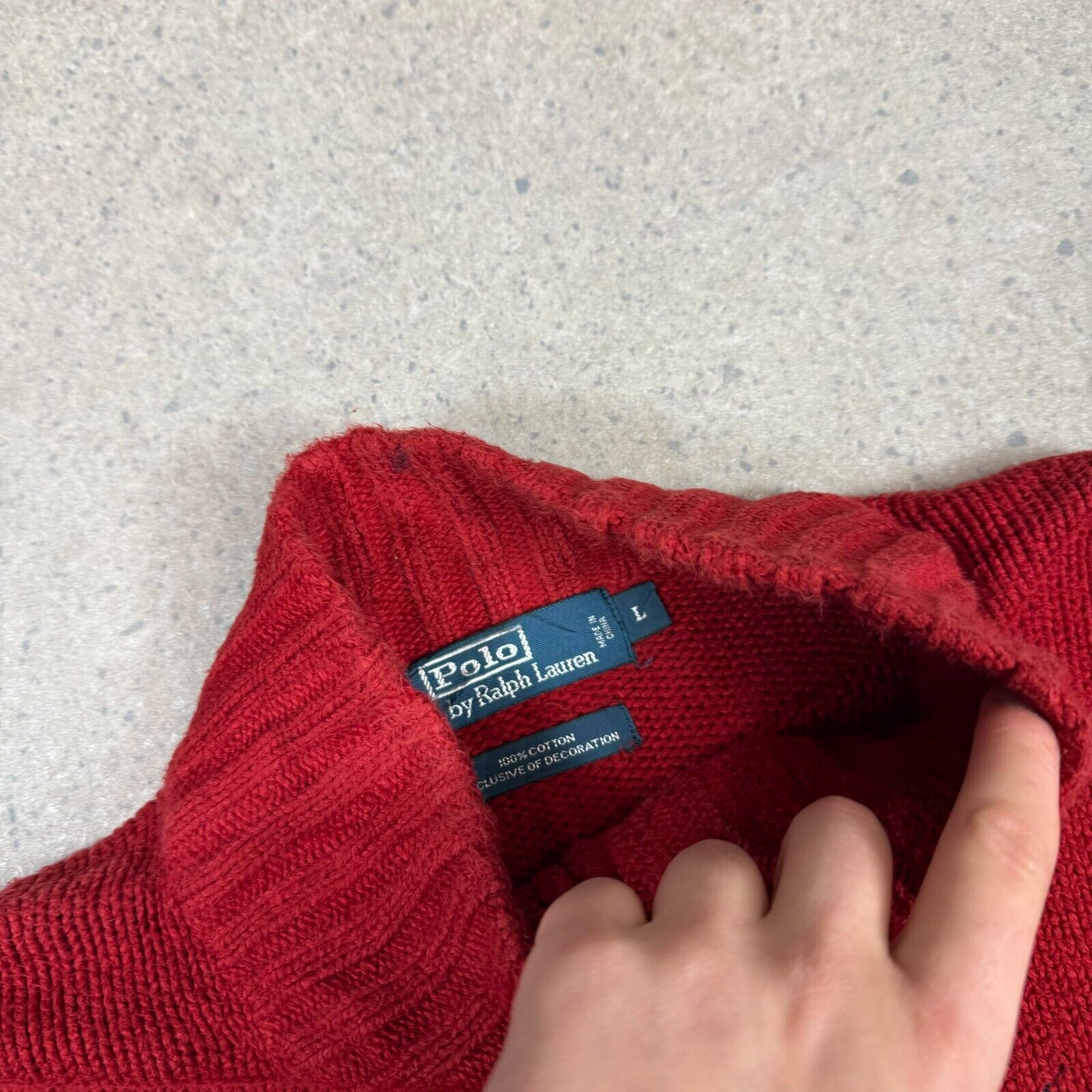 Ralph Lauren 1/4 Zip Jumper Large Red Cotton