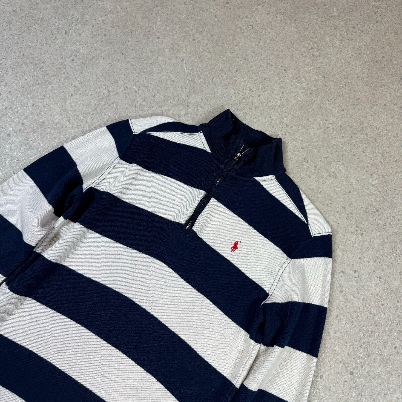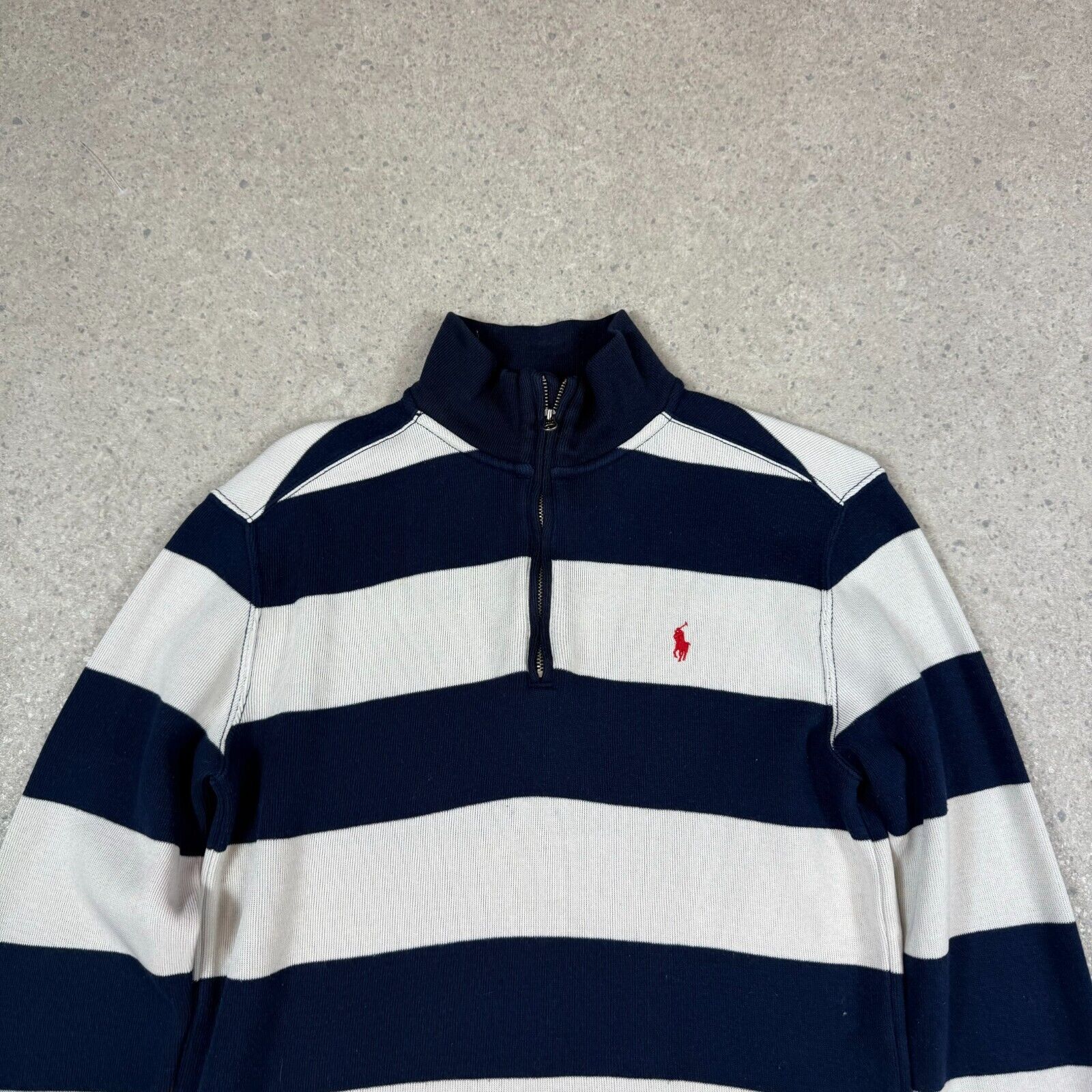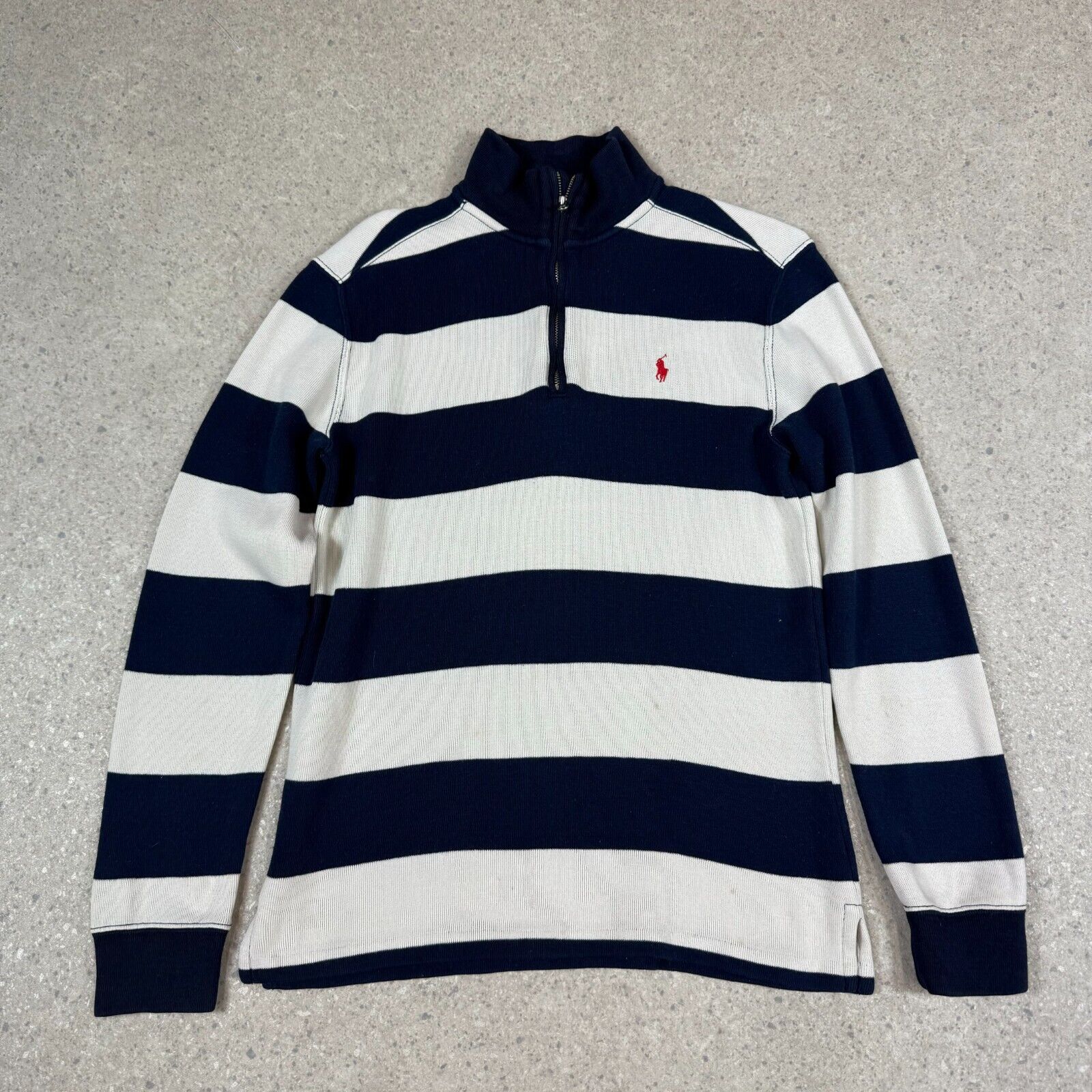 Ralph Lauren 1/4 Zip Jumper XS Blue White Striped
