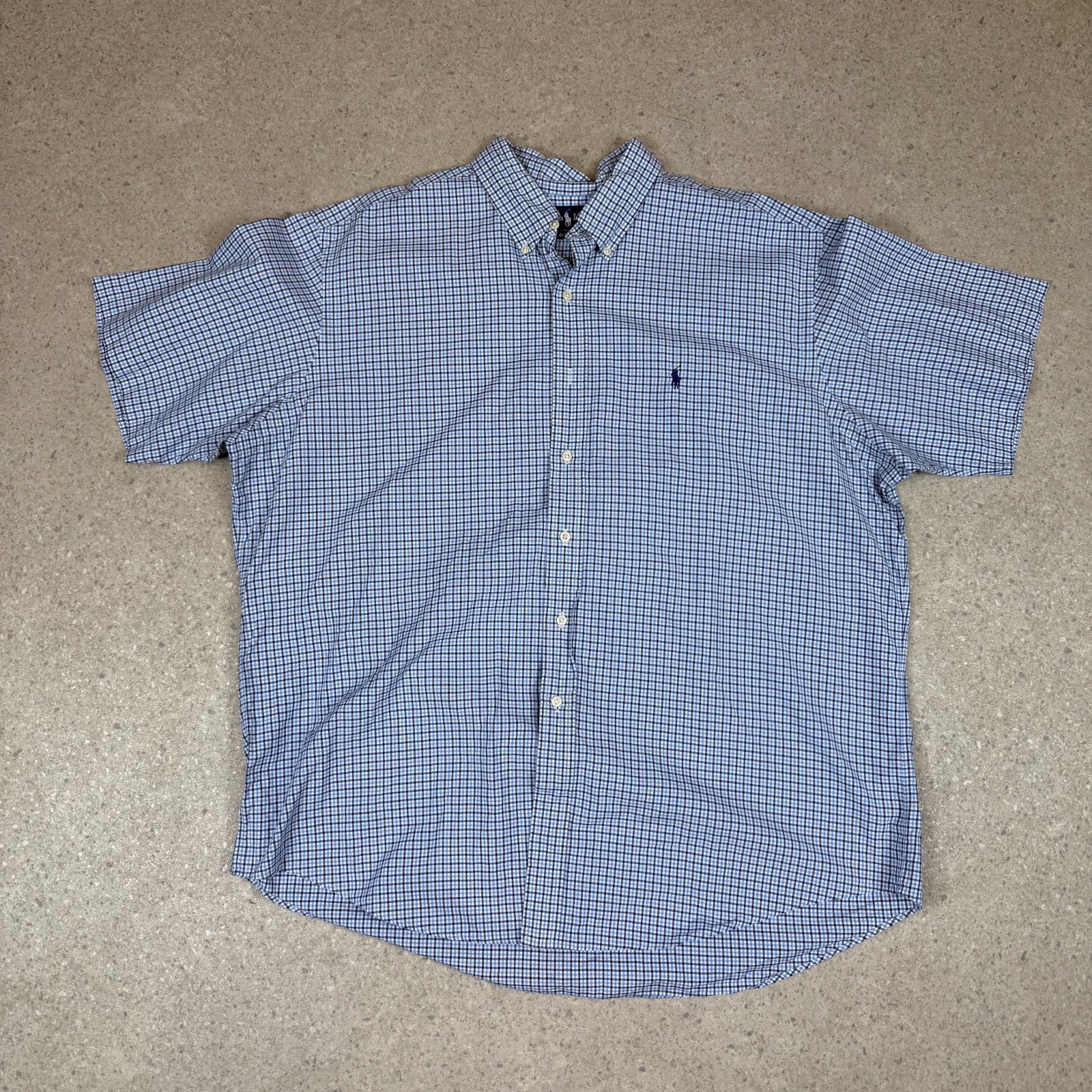Ralph Lauren Check Shirt 2XL Short Sleeves Blue Embroidered Logo