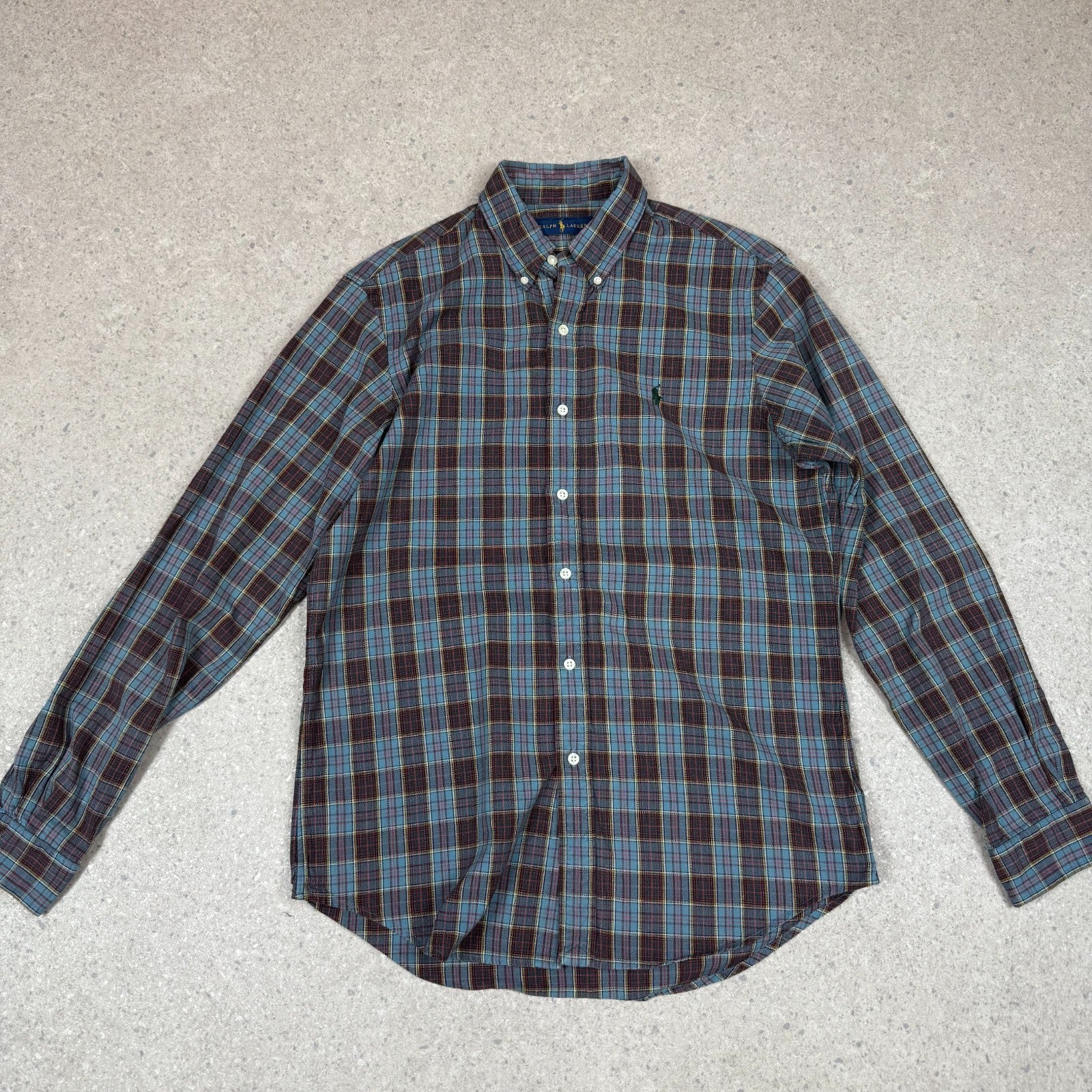 Ralph Lauren Check Shirt Medium Blue / Brown Colourway Embroidered Logo