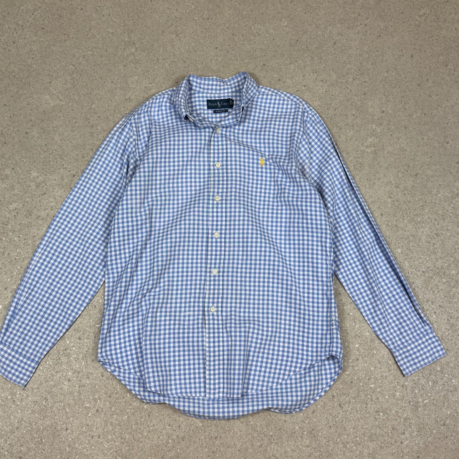 Ralph Lauren Check Shirt Medium Blue White Embroidered Logo Long Sleeve