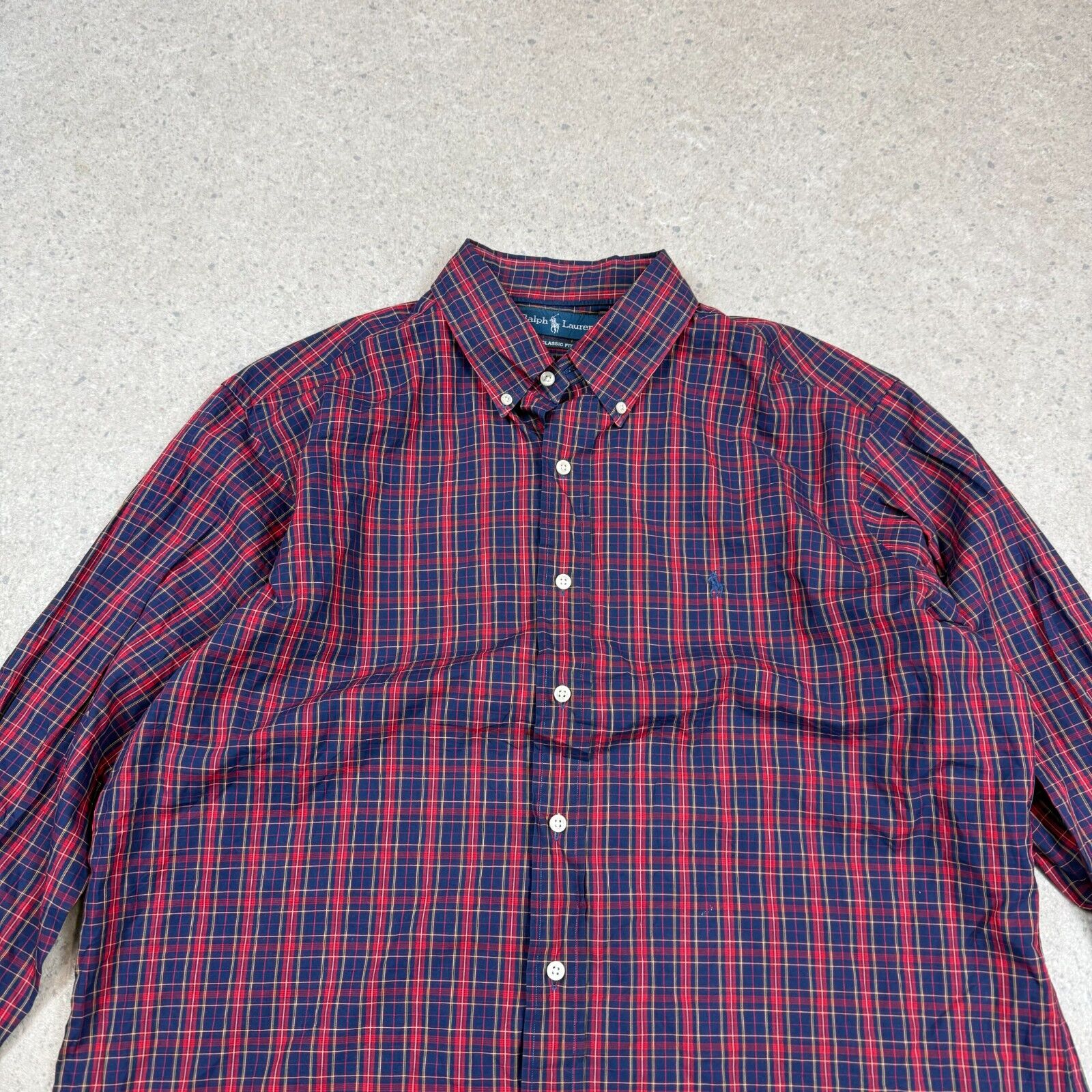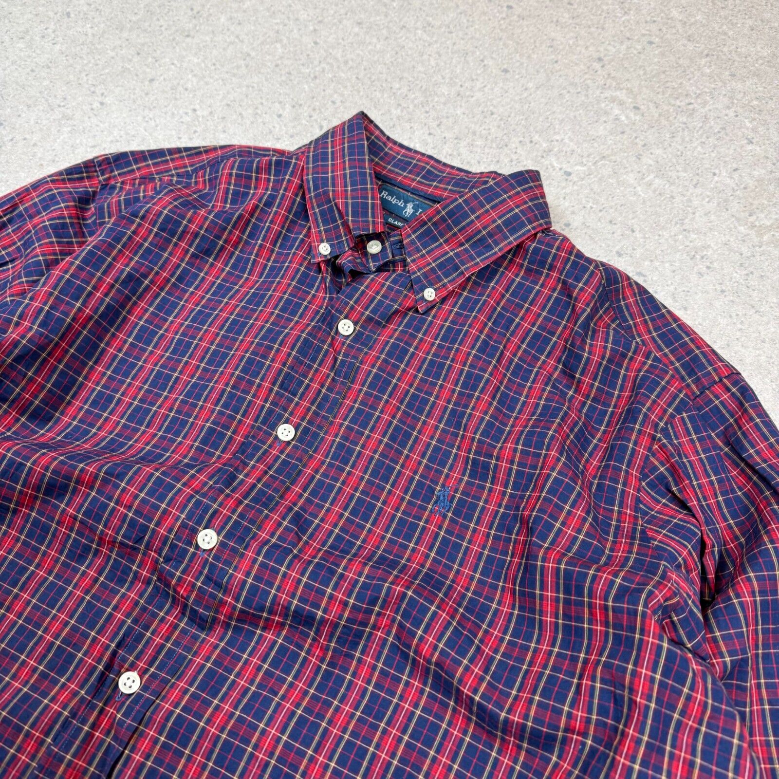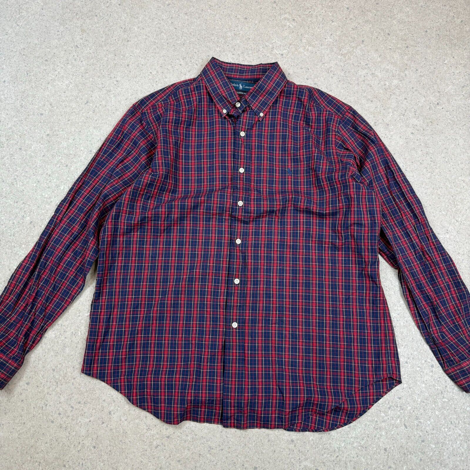 Ralph Lauren Check Shirt XL Classic Fit Navy Blue Red