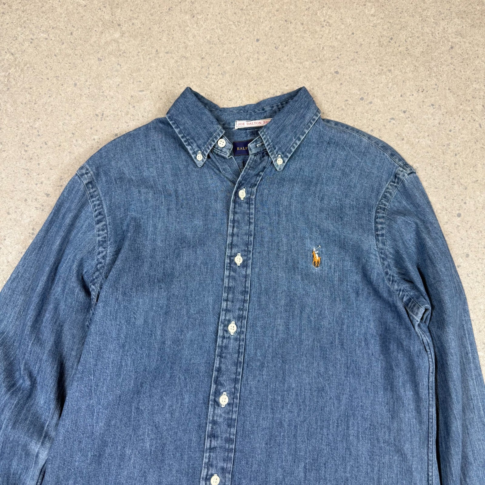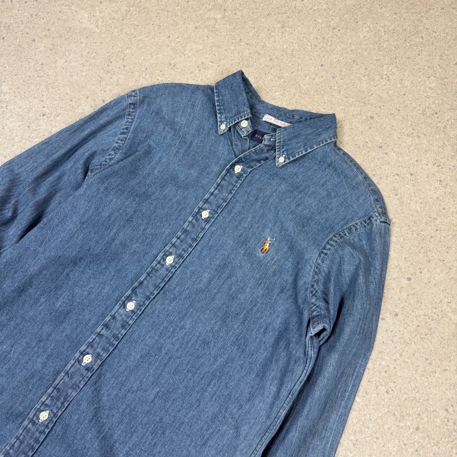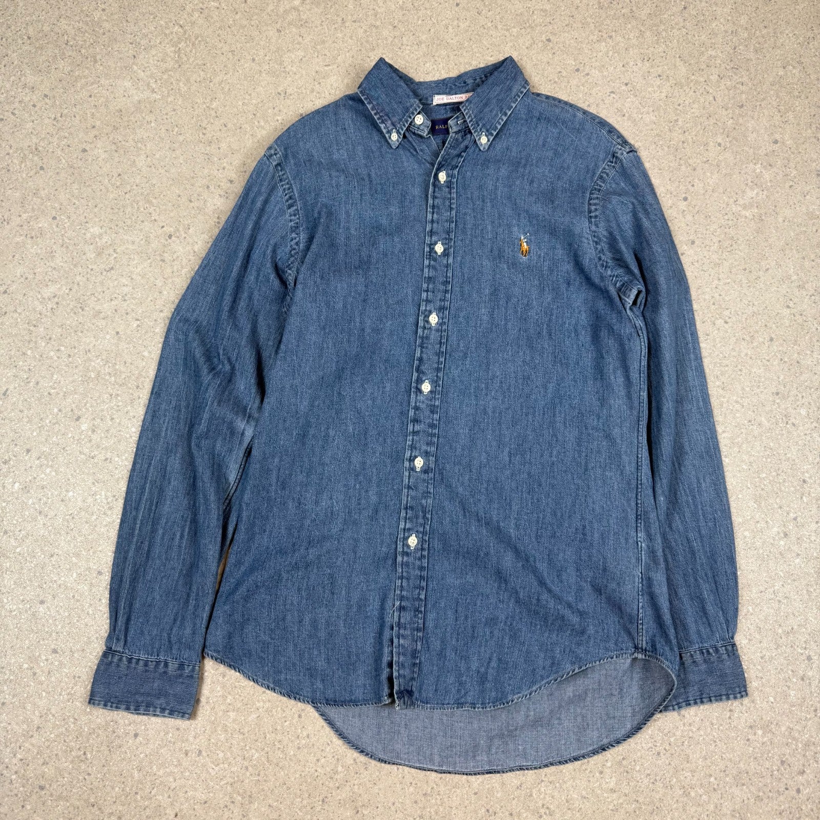 Ralph Lauren Denim Shirt Small Blue Embroidered Logo Button Down