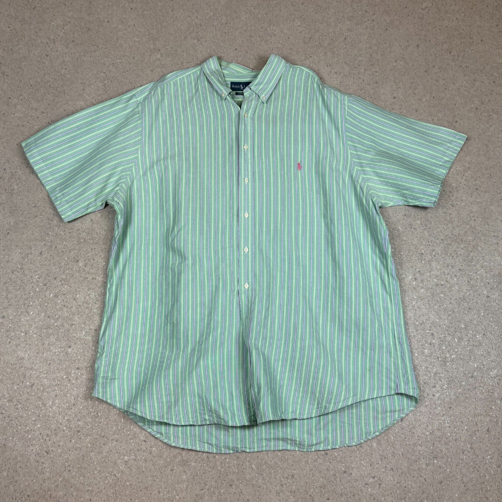 Ralph Lauren Shirt 2XLT Green White Stripe Short Sleeve