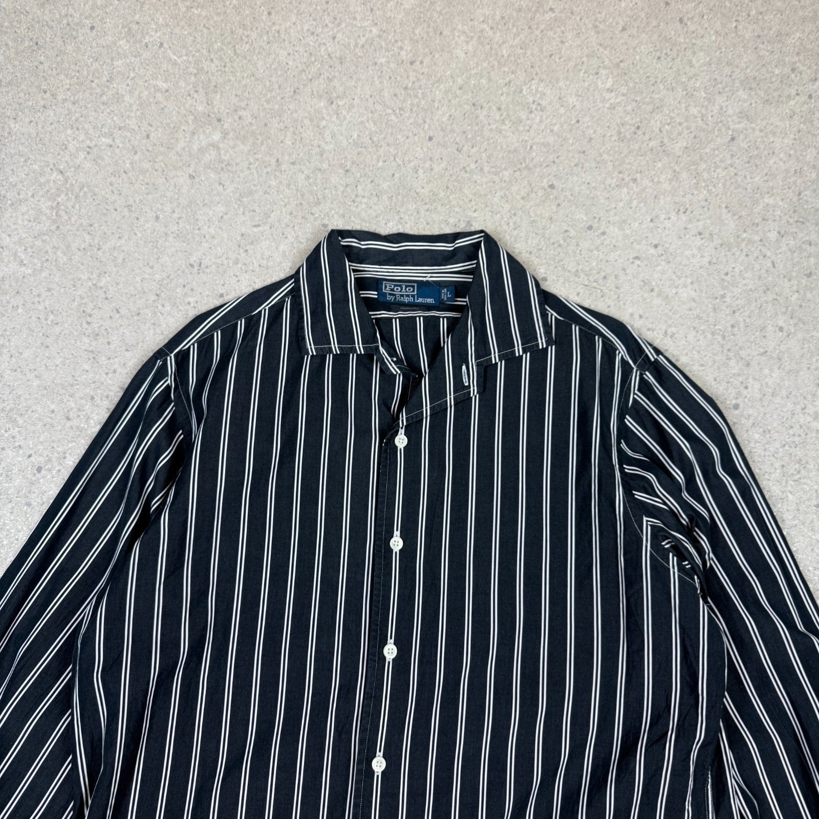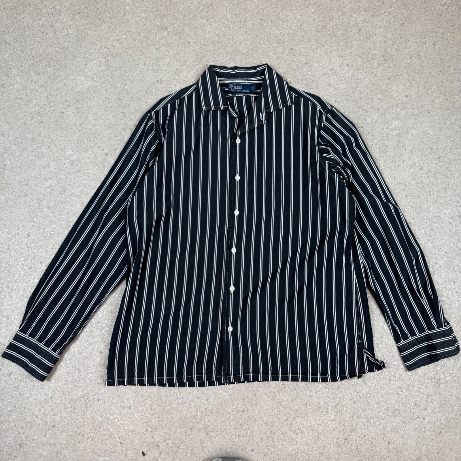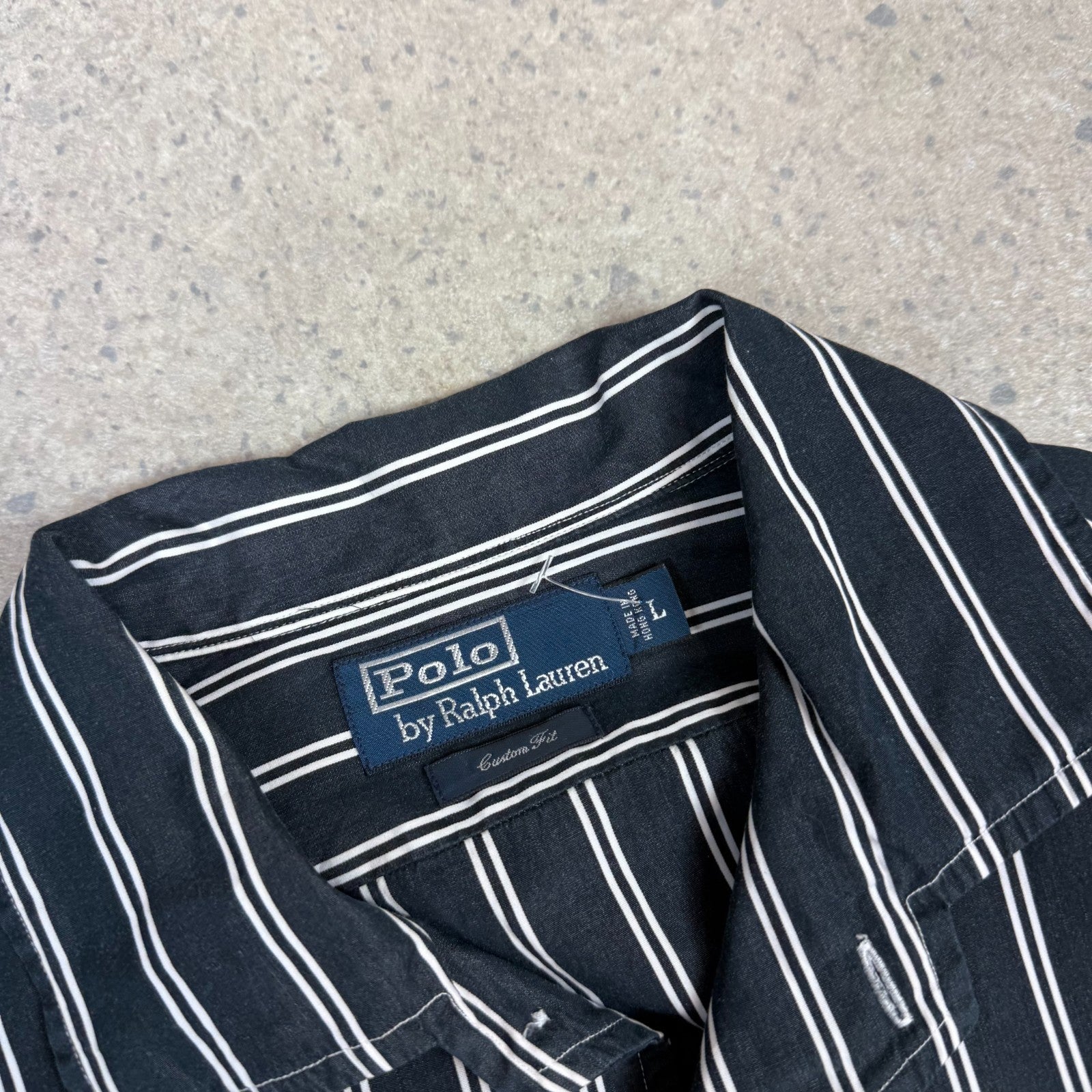 Ralph Lauren Shirt Large Black White Striped Custom Fit Long Sleeve