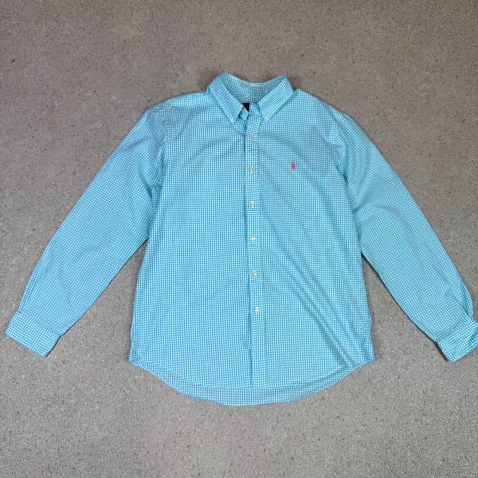 Ralph Lauren Shirt Large Blue Check Shirt Embroidered Logo Long Sleeve