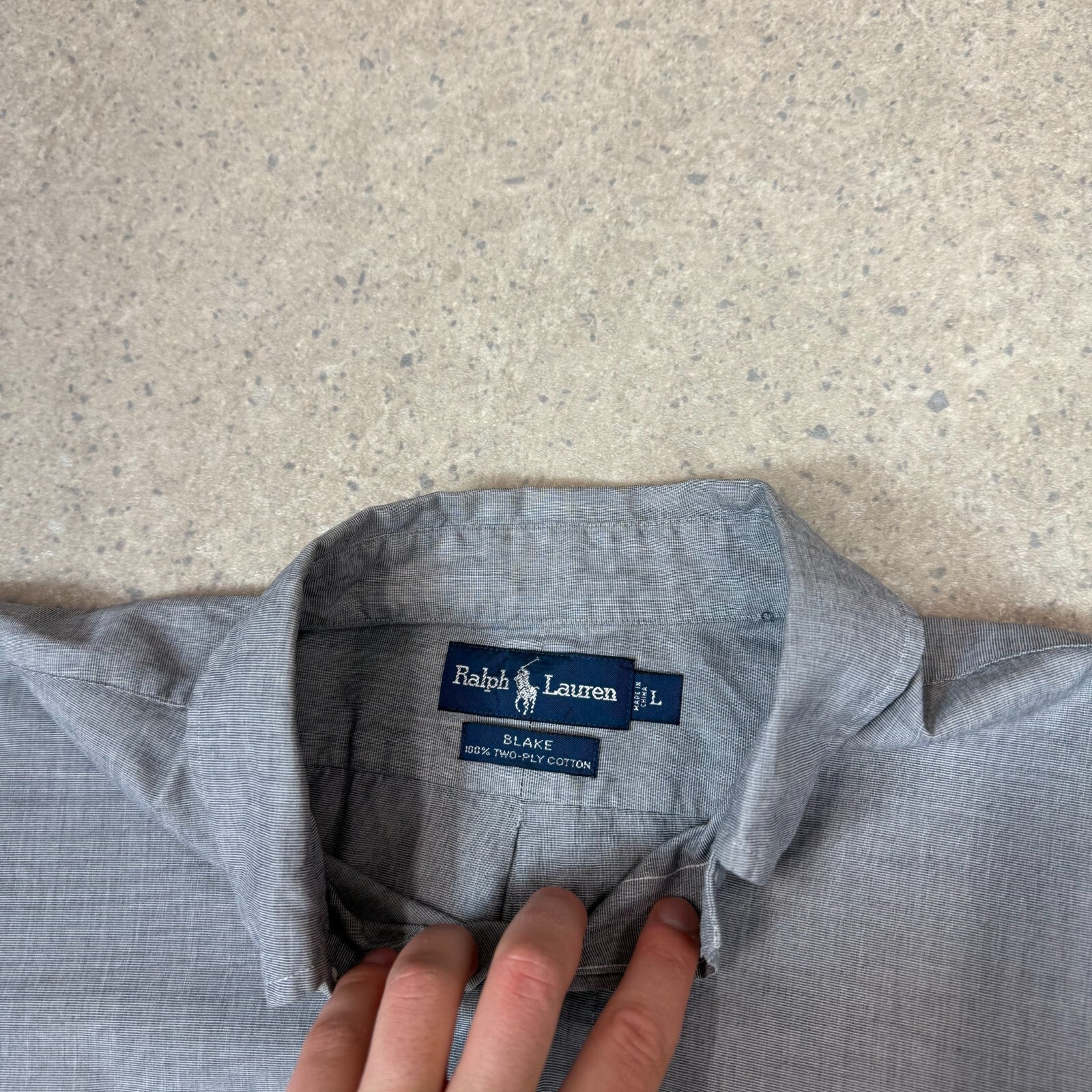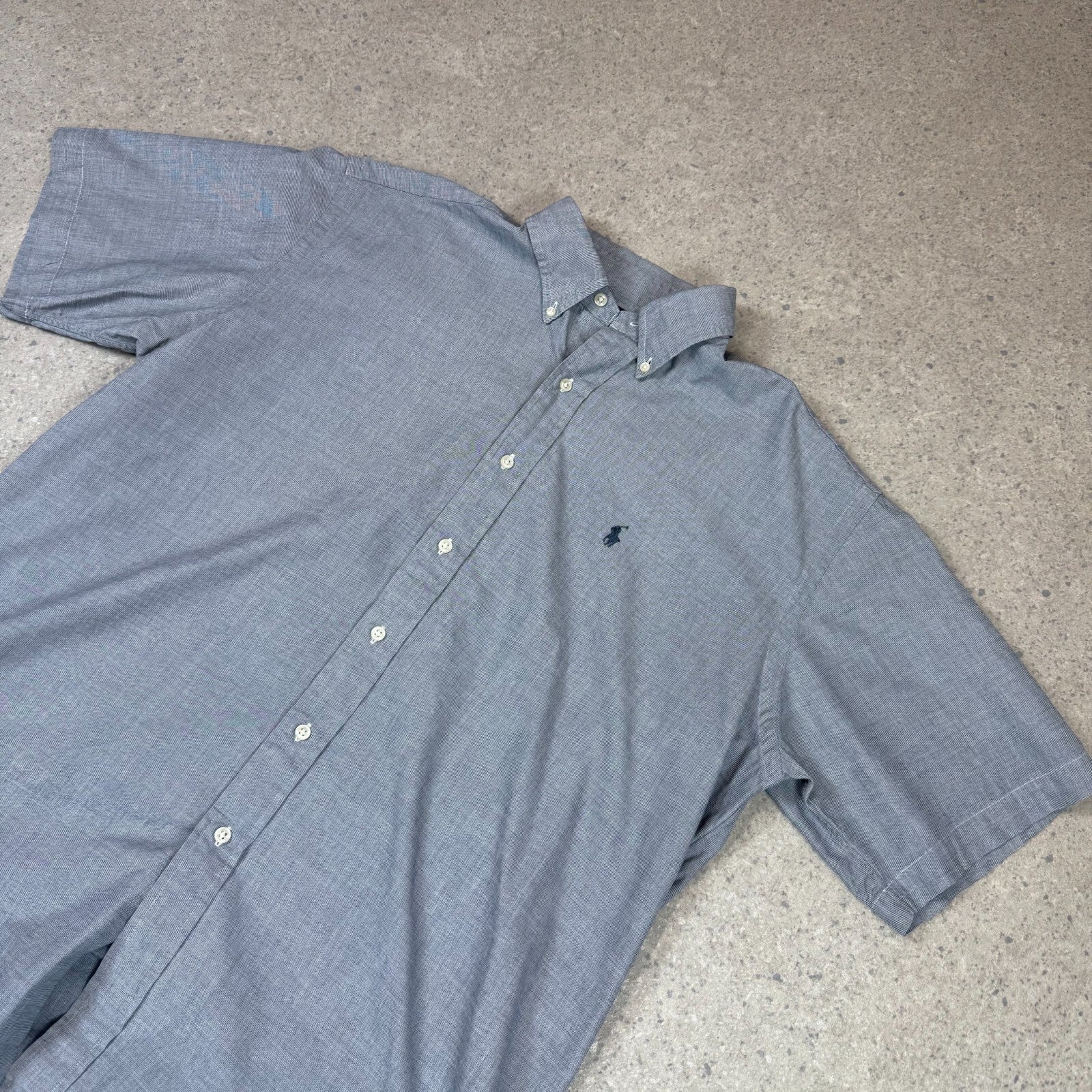 Ralph Lauren Short Sleeve Shirt Large Grey Embroidered Logo Long Sleeve