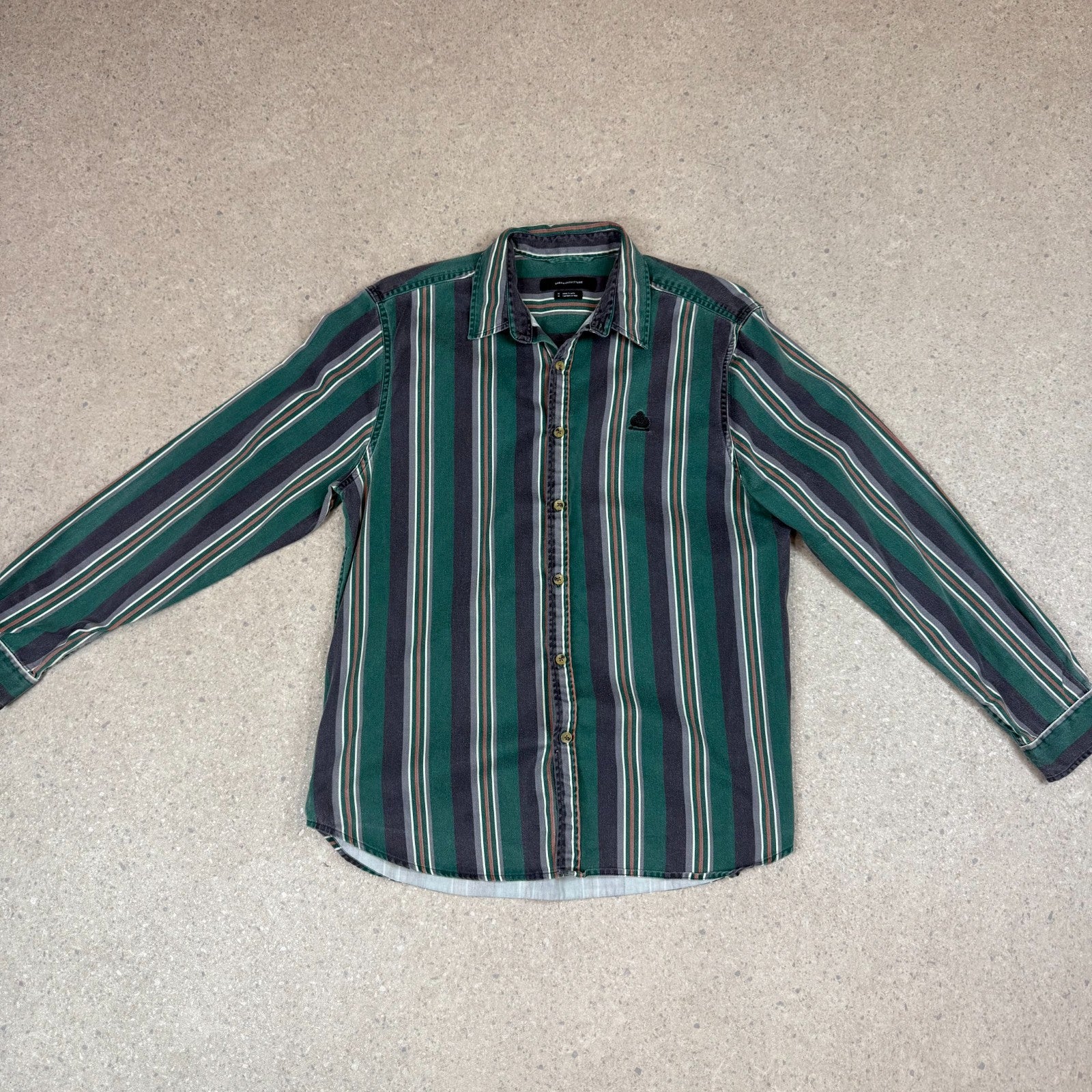 Urban Outfitters Shirt Medium Green Stripe Button Up Embroidered Logo