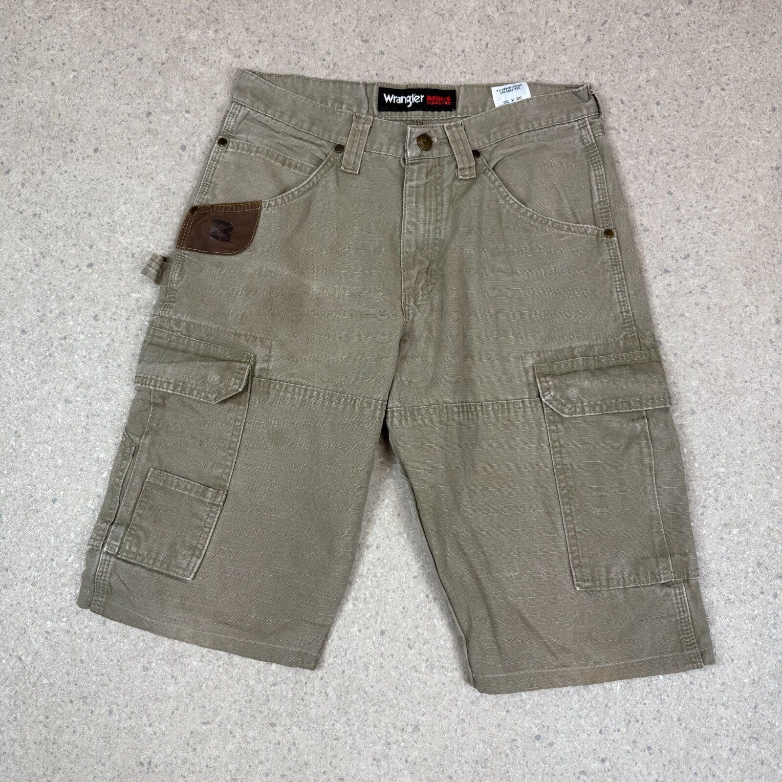 Wrangler Workwear Cargo Shorts 30” Khaki Green Denim Vintage Aesthetic Pockets